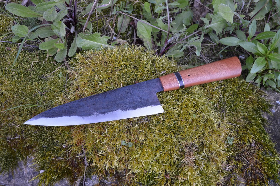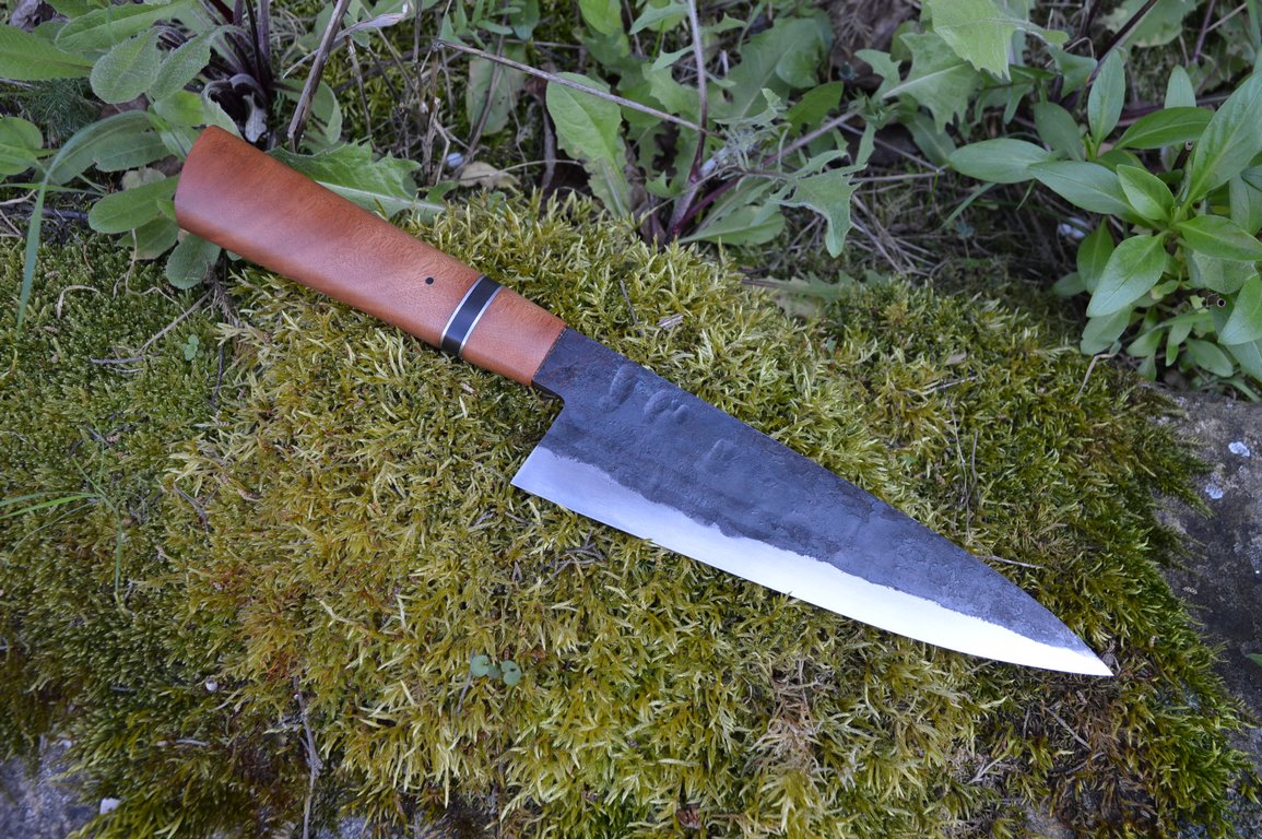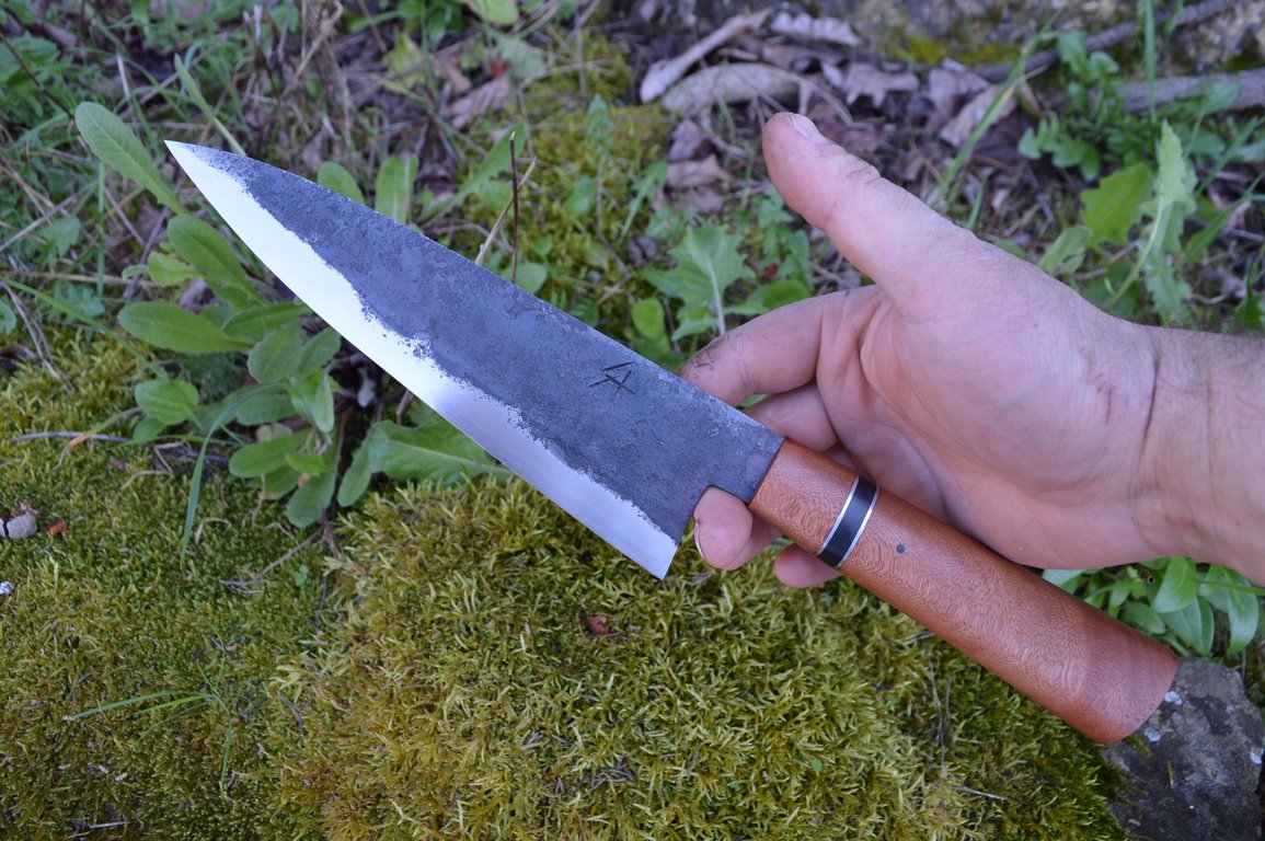 Gyuto forgé en acier au carbone 135Cr3, lame laissée très brute de forge.
